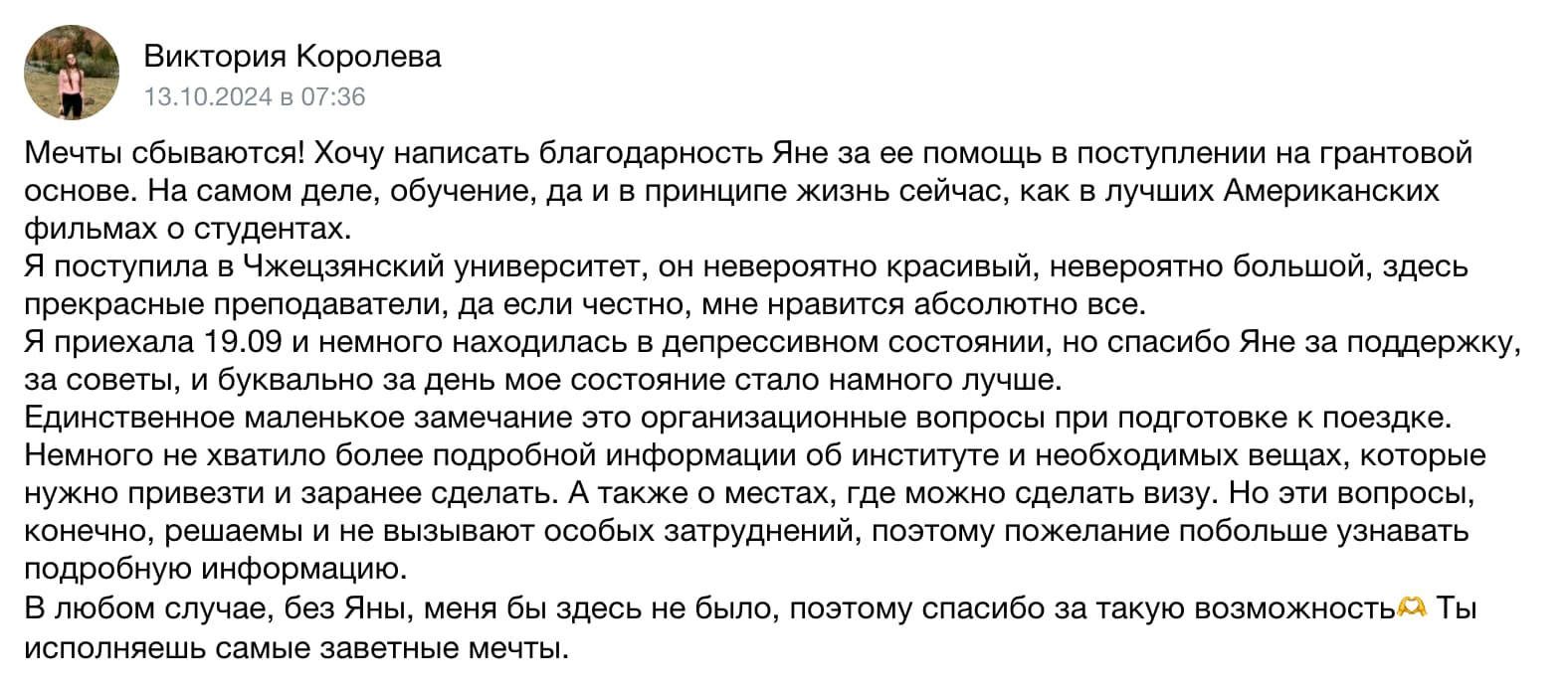 В среднем — от 2 до 6 месяцев. Срок зависит от программы, университета и наличия гранта. Мы сразу обозначаем реальные сроки и держим вас в курсе на каждом этапе